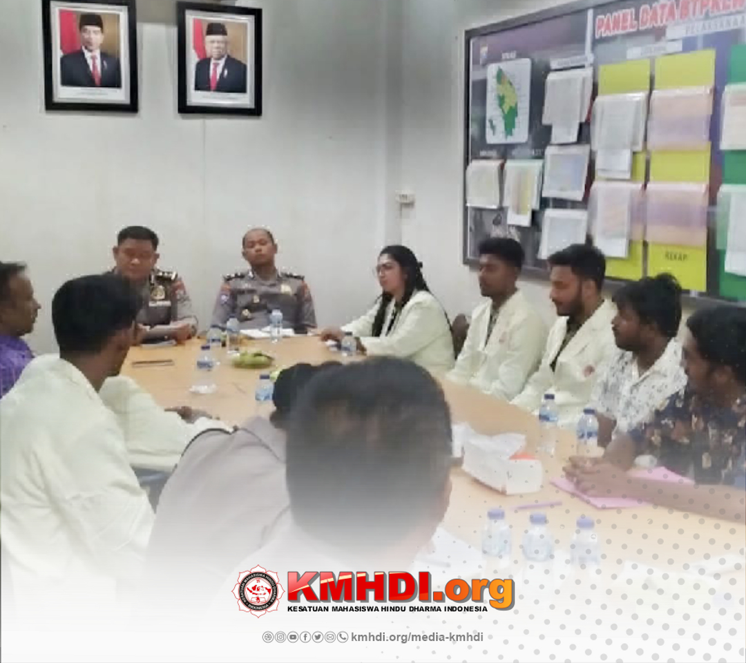 Medan, kmhdi.org – Pimpinan Cabang Kesatuan Mahasiswa Hindu Darma Indonesia (PC KMHDI) Medan diterima audiensi oleh Kapolda Sumut yang diwakili oleh Dir Binmas Polda Sumut pada Senin, (15/01/2024).
