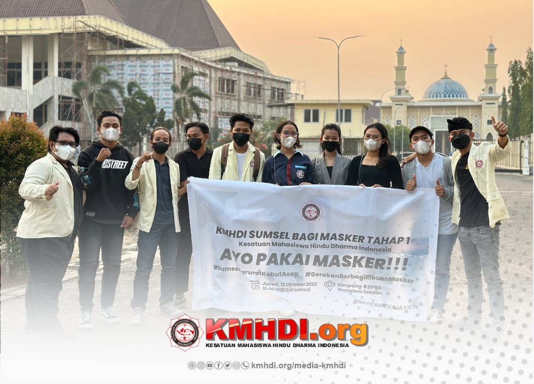 Palembang, kmhdi.org – Pimpinan Cabang Kesatuan Mahasiswa Hindu Dharma Indonesia (PC KMHDI) Palembang bersama dengan Pimpinan Daerah Kesatuan Mahasiswa Hindu Dharma Indonesia Sumatera Selatan (PD KMHDI Sumsel) melakukan kegiatan pembagian masker gratis kepada masyarakat kota Palembang (13/10).