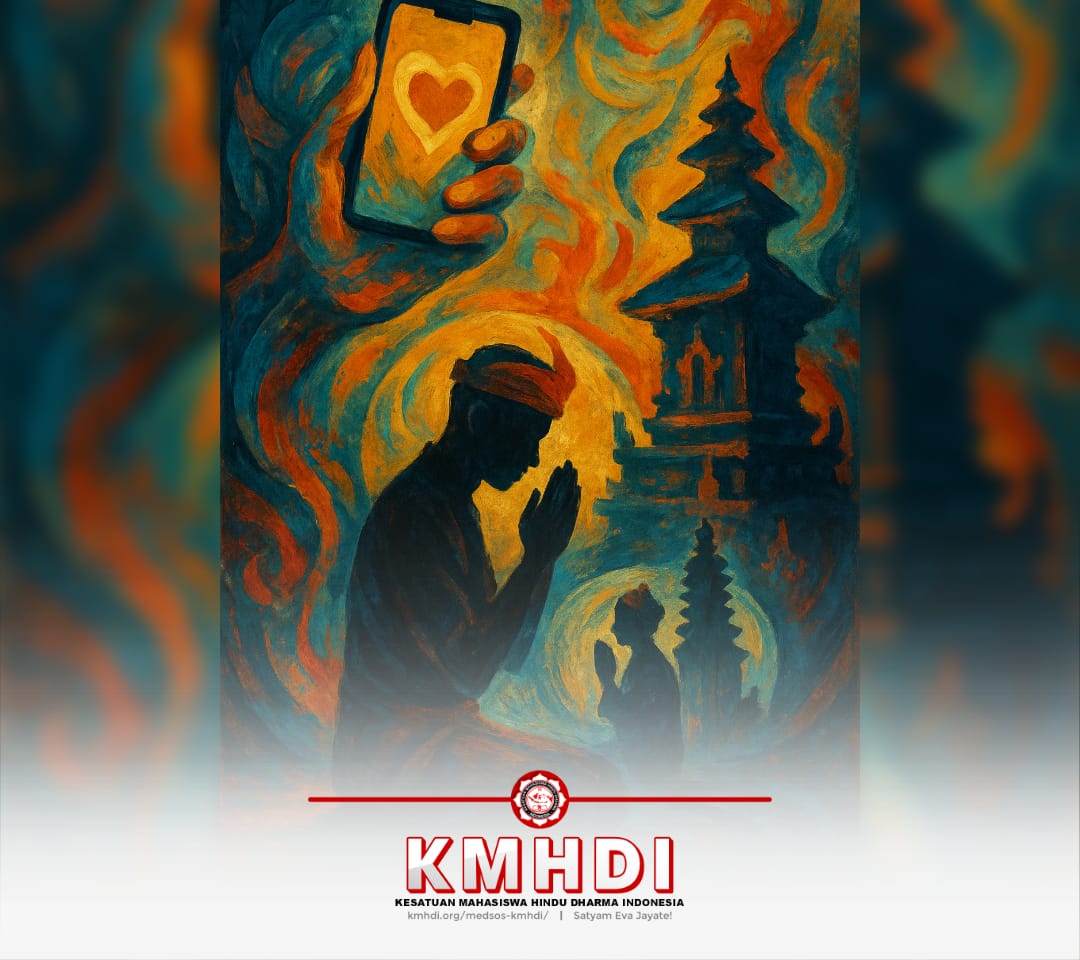 Bayangkan sebuah pagi di sebuah pura di Bali. Asap kemenyan menari di udara, aroma bunga persembahan menguar lembut, dan suara mantra bergema pelan, menciptakan harmoni yang seolah-olah menghentikan waktu. Di momen ini, seseorang seharusnya tenggelam dalam keheningan batin, menyatu dengan yang ilahi. Namun, kini, momen itu sering kali terputus oleh suara klik kamera ponsel. Posisi tangan diatur agar terlihat anggun, sudut pelinggih dipilih yang paling dramatis, dan pencahayaan diperiksa agar sesuai dengan estetika media sosial. Sebelum doa selesai, sebuah unggahan sudah lahir, lengkap dengan caption yang penuh nuansa religius: “Bersyukur atas anugerah pagi ini.”