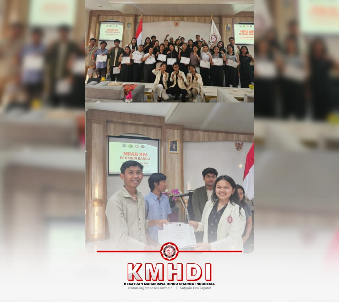 Bangli, kmhdi.org – Pimpinan Cabang Kesatuan Mahasiswa Hindu Dharma Indonesia (PC KMHDI) Bangli sukses melaksanakan prosesi pelantikan calon kader baru di Aula Kantor Kementerian Agama Kabupaten Bangli. Kegiatan yang merupakan puncak dari rangkaian Masa Penerimaan Anggota Baru (MPAB) XIV ini mengusung tema “Taki-Takining Sewake Guna Widya” dan berlangsung dengan penuh semangat dan antusiasme (22/06).
