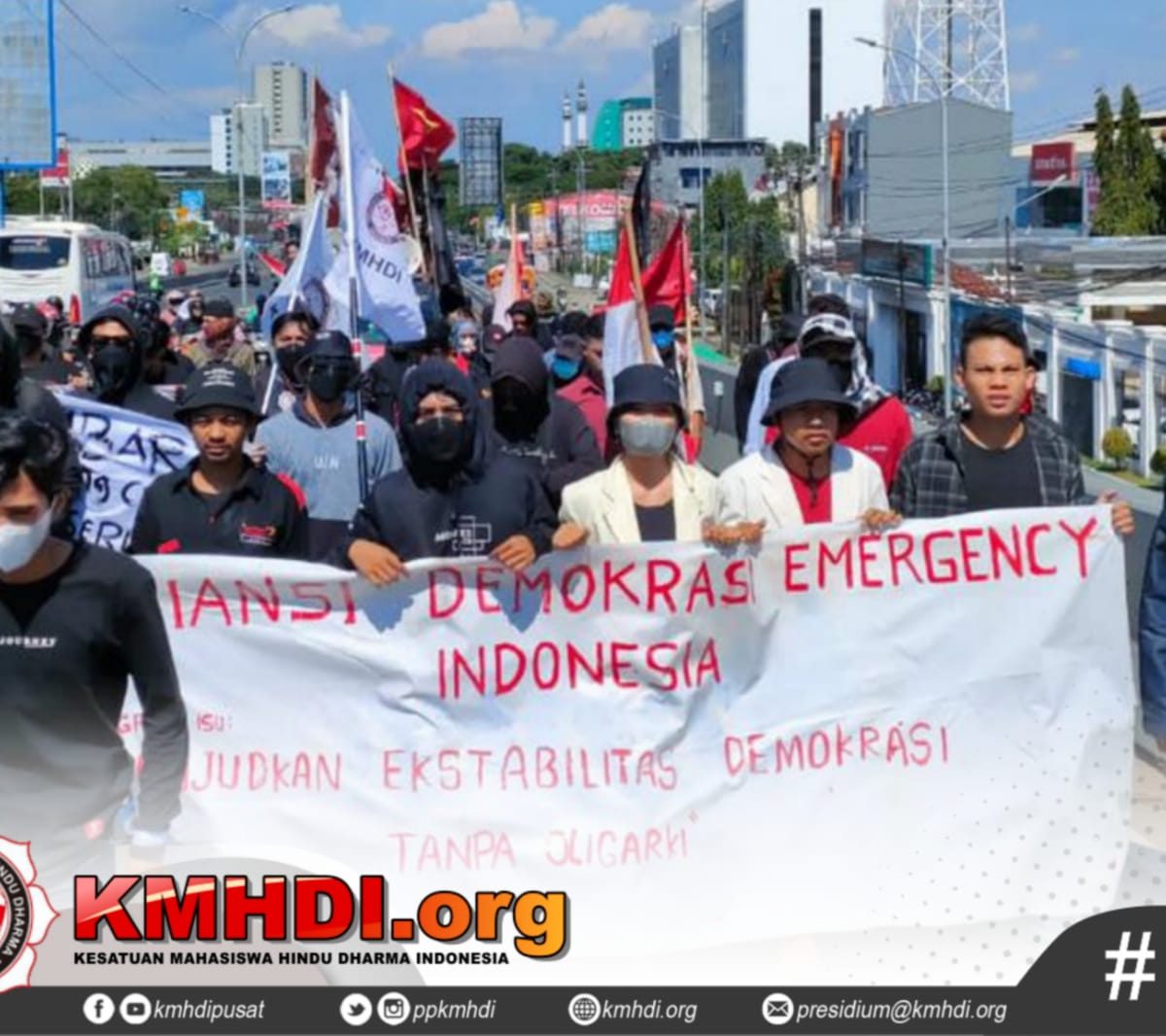 Makassar, kmhdi.org – Pimpinan Cabang Kesatuan Mahasiswa Hindu Dharma Indonesia (PC KMHDI) Makassar menggelar Aksi Unjuk Rasa bersama 9 Organisasi Eksternal yang tergabung dalam “Aliasi Demokrasi Emergency Indonesia”. Dimulai pukul 14.00 Wita, aksi dilaksanakan di Depan Kantor DPRD Provinsi Sulawesi Selatan pada, Rabu (13/4).