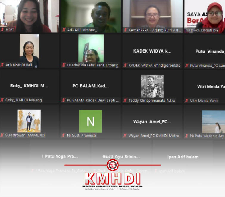 Pimpinan Pusat Kesatuan Mahasiswa Hindu Dharma Indonesia (PP KMHDI) menggelar Diskusi dengan mengambil tema “Implementasi dan Tantangan UU KIA”, pada Selasa (11/06) melalui platform zoom yang dihadiri oleh kader-kader KMHDI se-Indonesia.